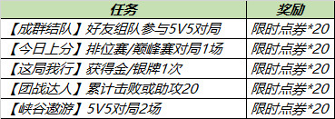 4、在比赛中,玩家可以通过每天积累助攻或击败敌人20次获得20张优惠券。